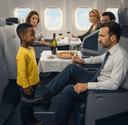 The boarding gates were buzzing with chatter as travelers filed onto the plane. Among them was Marcus, a young Black boy, walking confidently down the […]