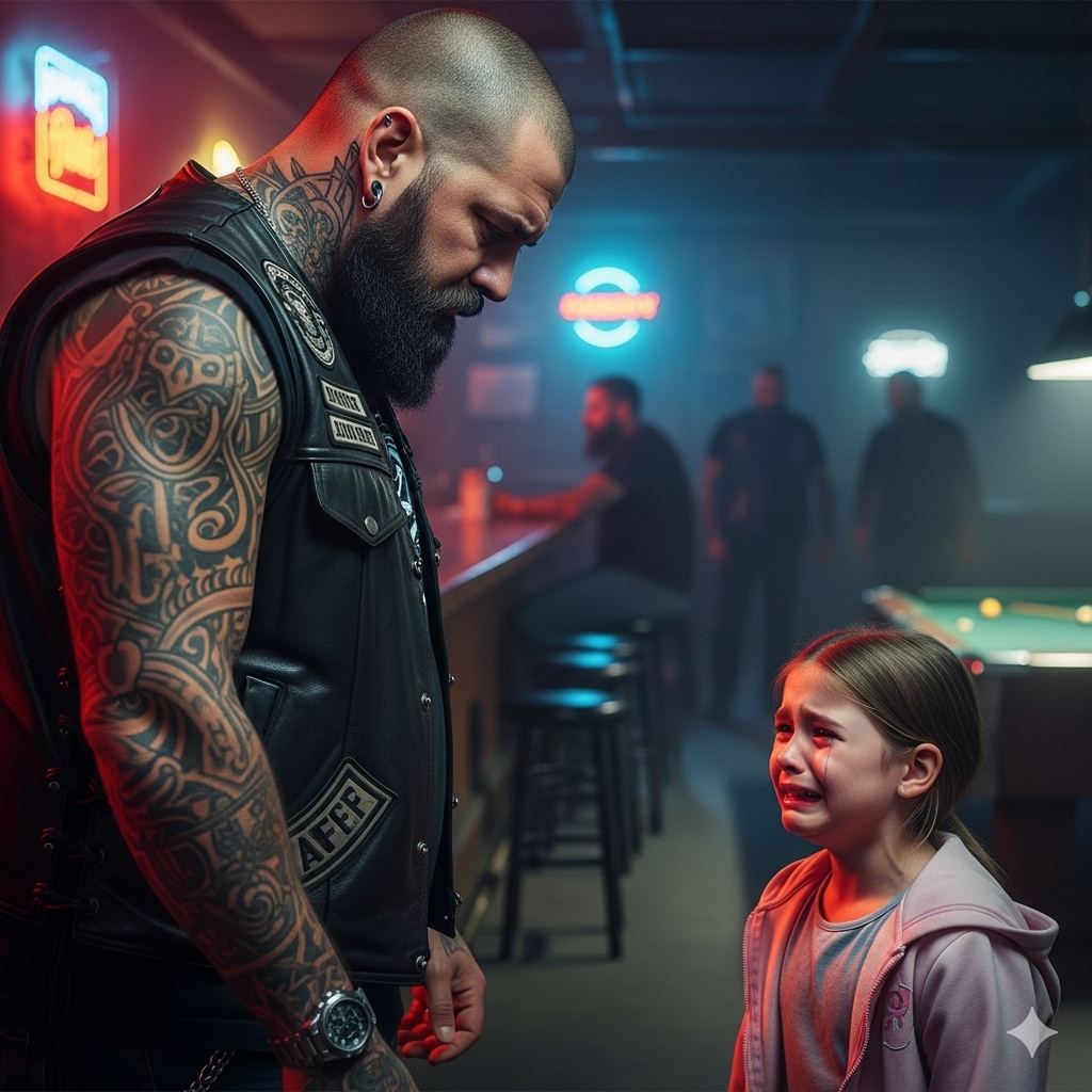 All the leather-clad bikers in that smoke-filled room fell deathly silent as this little girl in pajamas, covered in Disney princesses, stood in the doorway, tears streaming down her face, staring at thirty tough bikers as if they were her last hope. The jukebox seemed to be drowning out a Johnny Cash song. The pool cues froze mid-spin.
