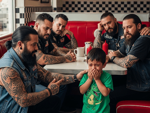 All conversations stopped. Fifteen veterans in leather vests stood frozen, staring at the little boy in a dinosaur T-shirt who had just asked us to commit murder as if he were asking for more salsa for his tacos.