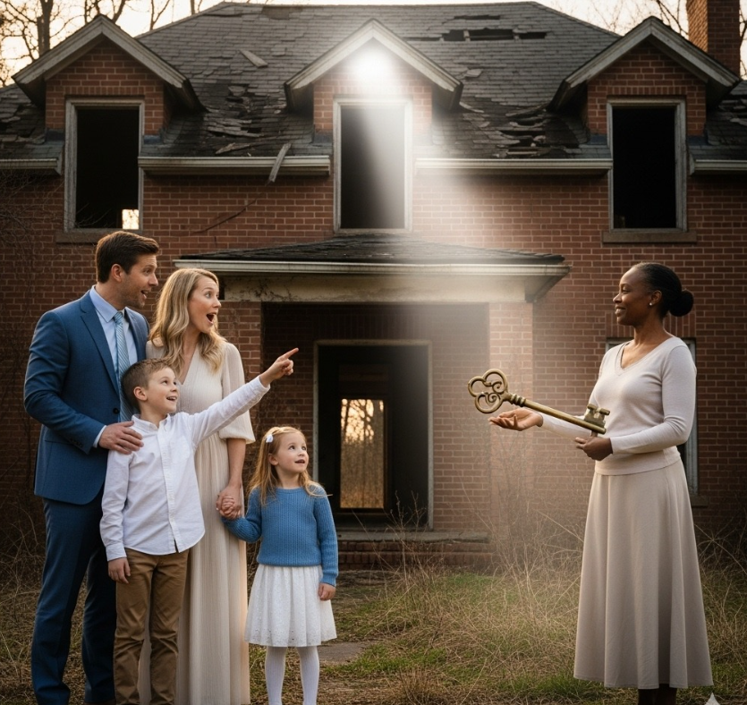 The two-story structure looked like it had been abandoned for decades. Broken windows, peeling paint, weeds growing up to the porch. But something made Keisa smile for the first time in weeks. She recognized the house instantly. “Mom, this house looks haunted,” murmured her 16-year-old daughter, Yasmin, reluctantly getting out of the car. “Are you sure Daddy Robert wanted you to keep this?” Keisha walked slowly to the front door, her hands slightly shaking, not from fear, but from excitement.