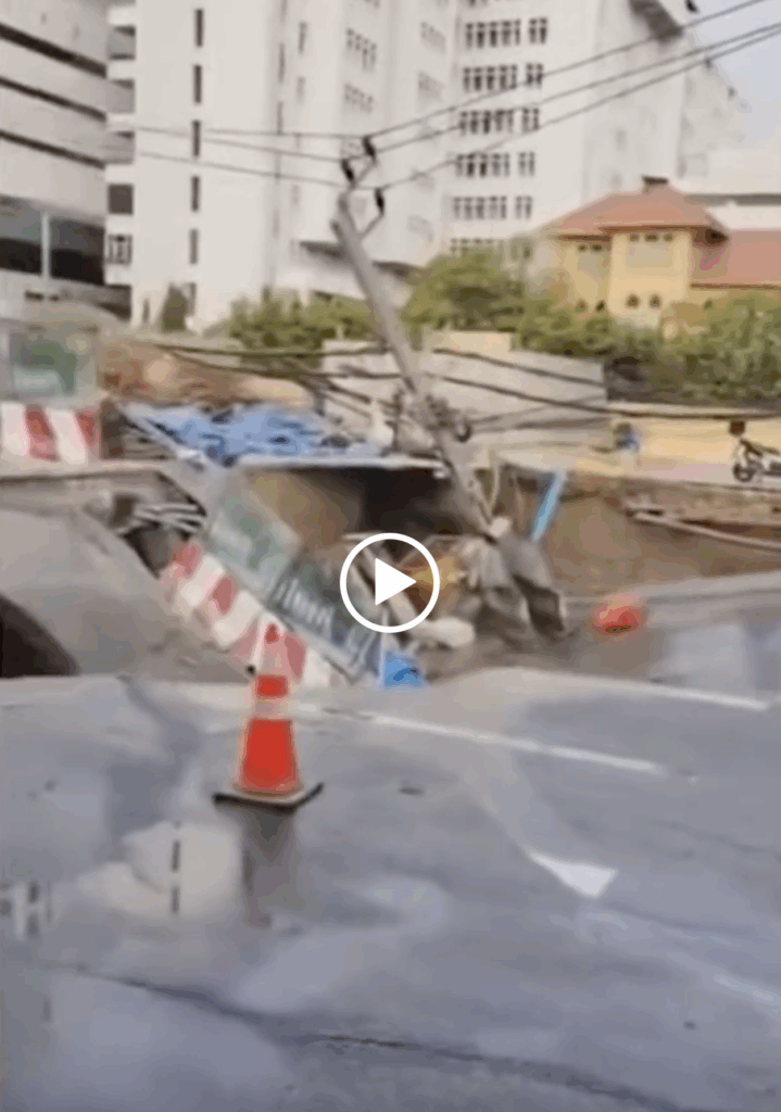 A section of road in front of Vajira Hospital on Samsen Road, Vajira Hospital Subdistrict, Dusit District, suddenly collapsed early this morning, prompting immediate response from emergency services.