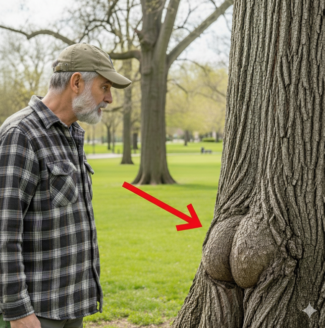 With each blow of the axe, the dry sound of the trunk resonated in the air. The curious villagers approached, intrigued. When it finally fell, the farmer began to cut away the swollen part… and what appeared inside left everyone speechless.
