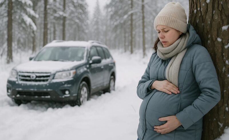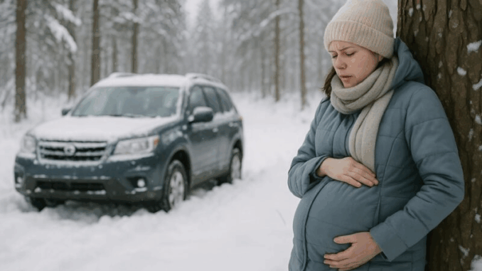 Mary realized: if she stayed in the car, she would freeze. Her phone had no signal. Desperate, she stepped outside, hoping that some driver or rescue team might pass by. But the forest road was deserted. She could barely stand, her belly ached badly, and the baby was restless.