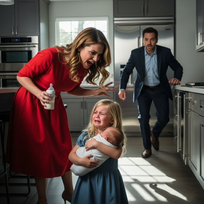 The children huddled together, wide-eyed and trembling, as Cassandra’s threats grew darker. Her words were no longer just about the spill. “Do you think you can walk around this house living off your father’s money while I work my butt off trying to keep everything perfect? You don’t belong here. I could make you disappear, and no one would care.”