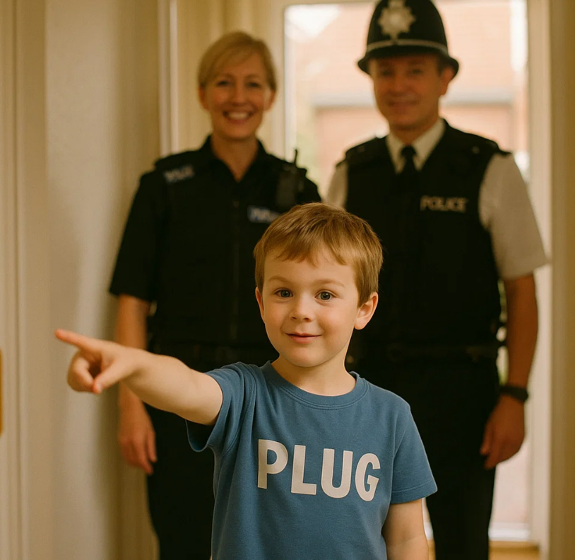 The officers knocked. A few seconds — nothing. Then the door opened, and a boy of about seven appeared in the doorway. Dark hair, clean clothes, a serious gaze like that of an adult.
