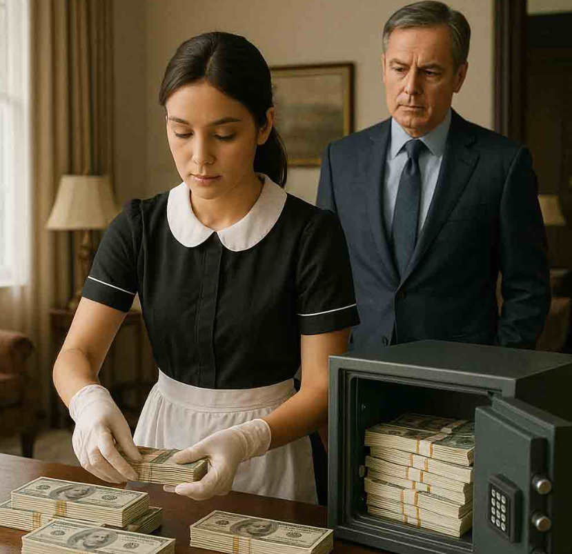 Clara hesitated. “Maybe he forgot,” she murmured to herself. Slowly, she stepped closer to the safe—not greedily, but carefully, like she was afraid of even breathing too hard near it. She looked at the stacks of money and whispered, “This could fix everything.”