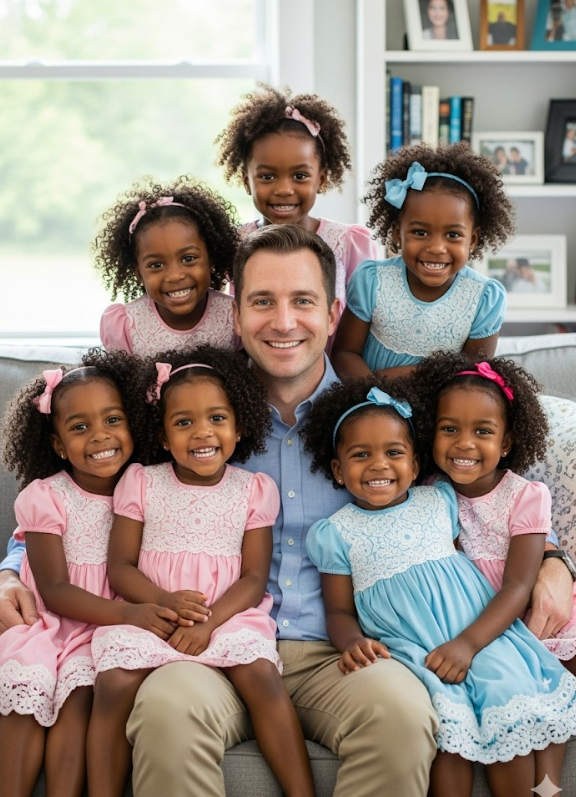 In 2025, 46 years later, Richard sat, frail but proud, in his graceful chair. Around him, radiant women in cream-colored dresses, their hands resting lightly on each other’s shoulders, their faces beaming with pride. Cameras clicked, headlines opened: In 1979, he adopted two black girls. See them now.
