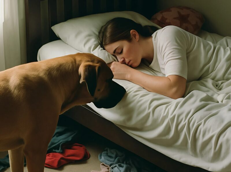 But he didn’t leave. On the contrary, he began persistently pawing at me, licking my cheek, and whining softly, as if calling me. I still didn’t understand why he was waking me so insistently. When I ignored him, he suddenly barked right next to my ear, then jumped on the bed and started barking loudly, sharply, with a worried tone.