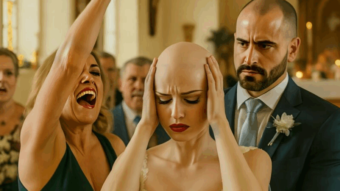 Some people laughed, others turned away, and some froze. I stood there, hands pressed to my head, tears burning in my eyes. I felt ashamed, hurt, humiliated. The groom hugged me, trying to comfort me, but I could feel his hand trembling. And then something happened that no one expected – and the mother-in-law deeply regretted her actions  Continued in the first comment