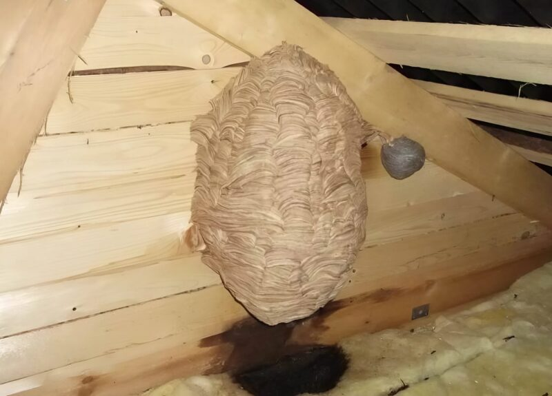 Most often, wasps build their nests in sheltered places – under roofs, in attics, in wall cavities, or in abandoned buildings.