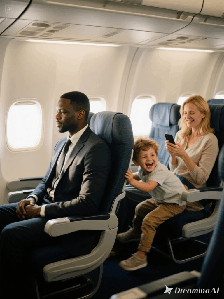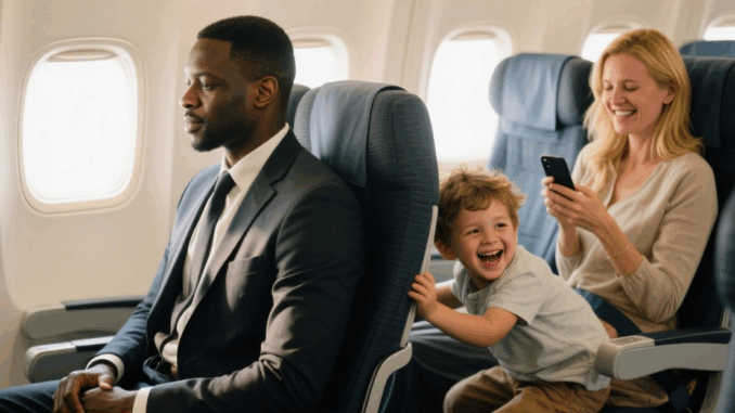 I’d been traveling for twelve hours straight, surviving on instant coffee and sheer willpower, and all I wanted was peace — six hours of silence above the clouds.