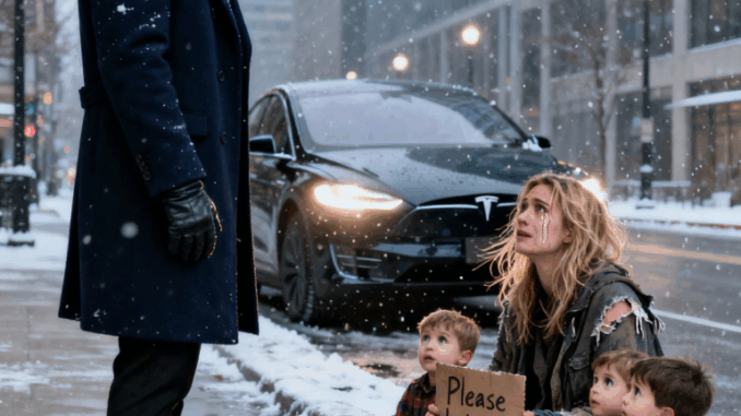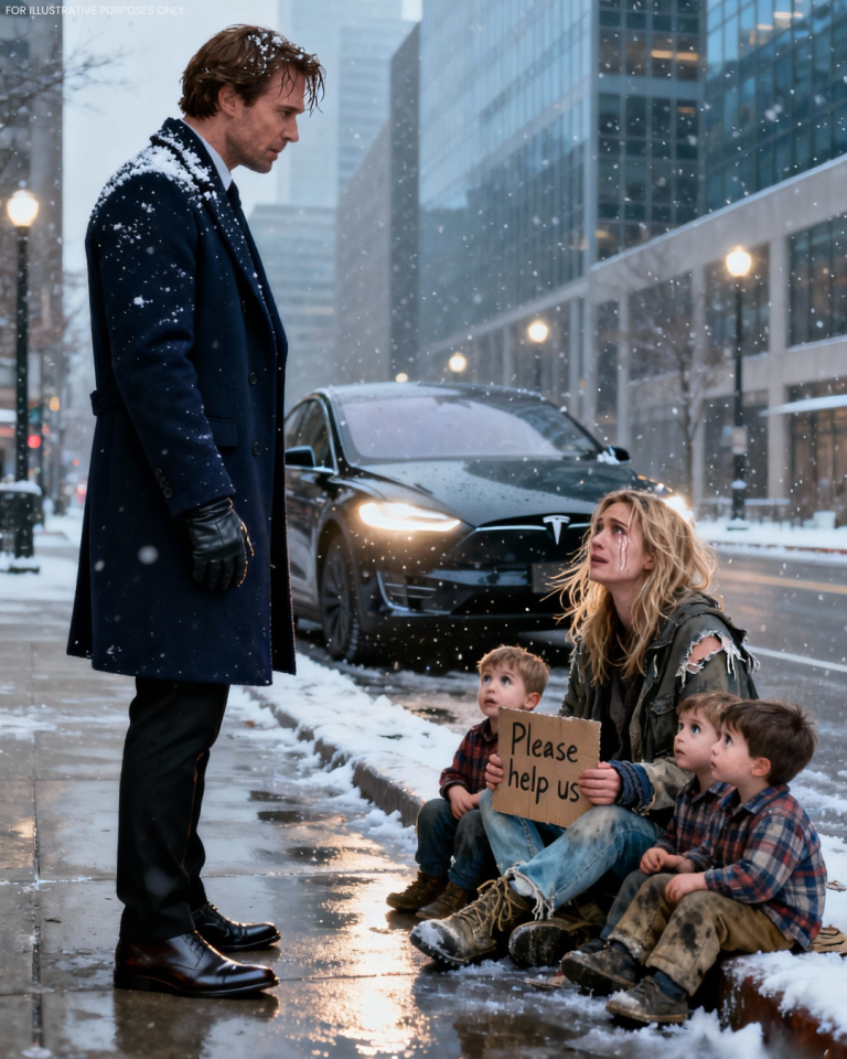 Near the curb, wrapped in a thin blanket, sat a woman with three small children pressed close to her for warmth. The woman held a cardboard sign that read, Please help us. Anything helps. The sight alone was heartbreaking, yet what froze Liam completely was her face.