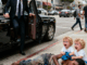 The street was crowded when Divine arrived, but the noise fell away the moment he saw her. Grace was kneeling on the ground, her clothes torn, her face pale and thin. Her belongings—just a few worn bags—lay scattered around her feet. The landlord stood over her, his voice loud and cruel.