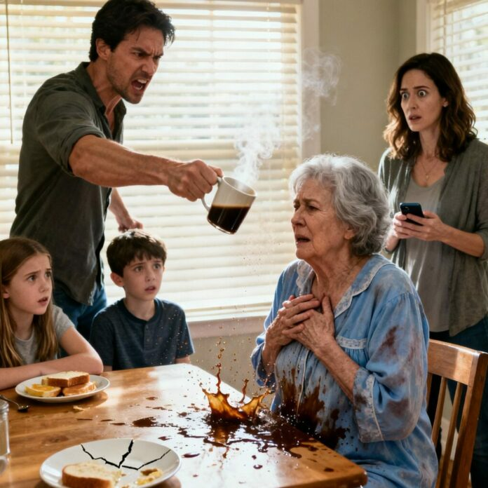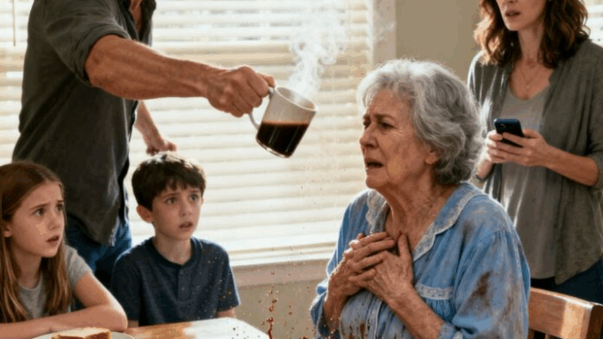 Mabel felt the sting of the coffee, but the deeper burn came from their silence. “I think I’ll go upstairs,” she whispered, rising slowly on trembling knees. No one stopped her.