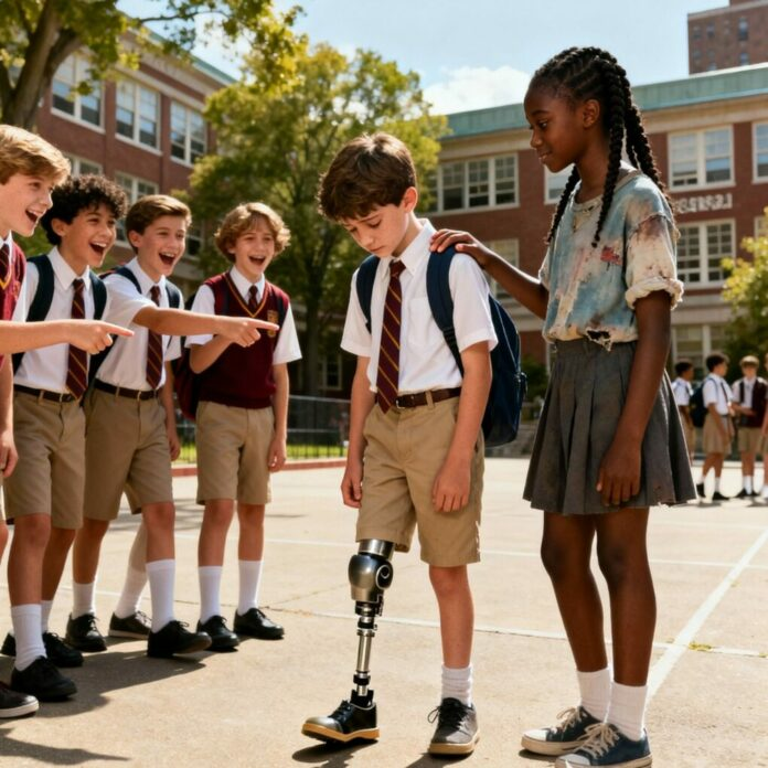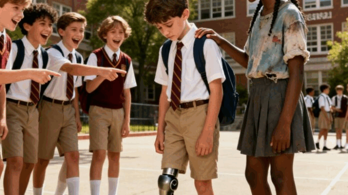 Leo Thompson was twelve years old, the only son of Thomas Thompson, a billionaire real estate tycoon in New York City. Despite the fortune surrounding him, Leo’s life at Lincoln Preparatory, one of Manhattan’s elite schools, was anything but easy. He was known not for intelligence or charm but for his prosthetic leg. Each metallic click with every step made him the target of cruel nicknames: “Robot Boy,” “Half-Boy,” “Metal Man.” Every hallway echo carried ridicule, making him shrink in the shadow of wealth he could never escape.