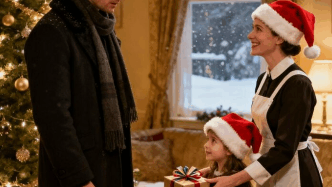 Just then, Lena Brooks, his housemaid, stepped in quietly. She was finishing her shift. Her four-year-old daughter, Mia, followed behind her wearing a red Santa hat too big for her head. They were ready to leave for the night.