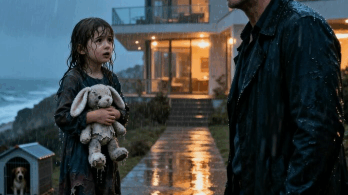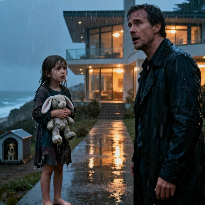 Ethan froze. At first, he thought he had imagined it. Then he turned—and saw her. A little girl, drenched and barefoot, staring up at him through the storm.