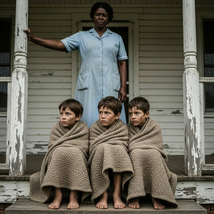 Evelyn didn’t ask who their parents were or why they had ended up in her yard. She only asked when they had last eaten. And just like that, her quiet house was no longer quiet. She gave up her bedroom so the boys could share the warmest room, stretched soup with water, and stitched shoes from thrift shop scraps. Neighbors whispered about a black widow raising three white boys, but Evelyn simply replied, “Children don’t choose their skin. They just need someone to love them right.”