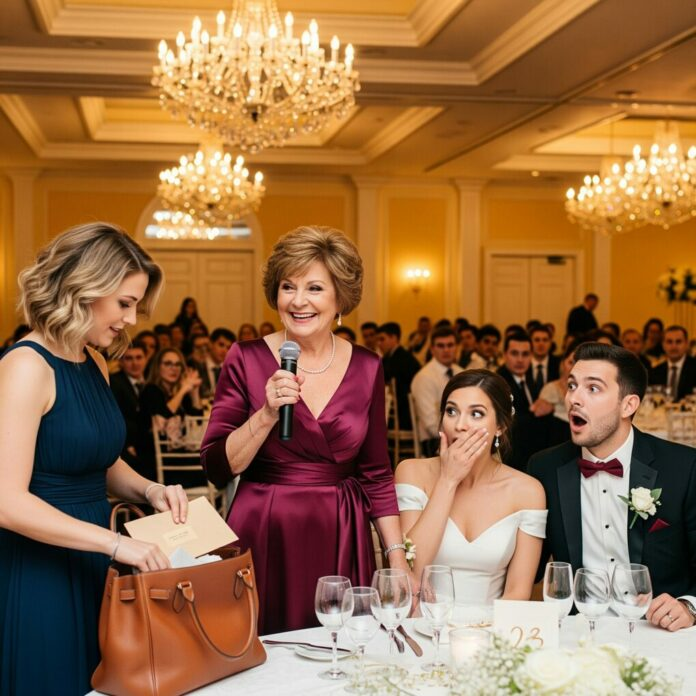 A hush fell over the room as Paige approached the small stage. Jason looked confused, his fiancée frozen beside him. Linda forced a smile, though her knuckles tightened around the microphone.