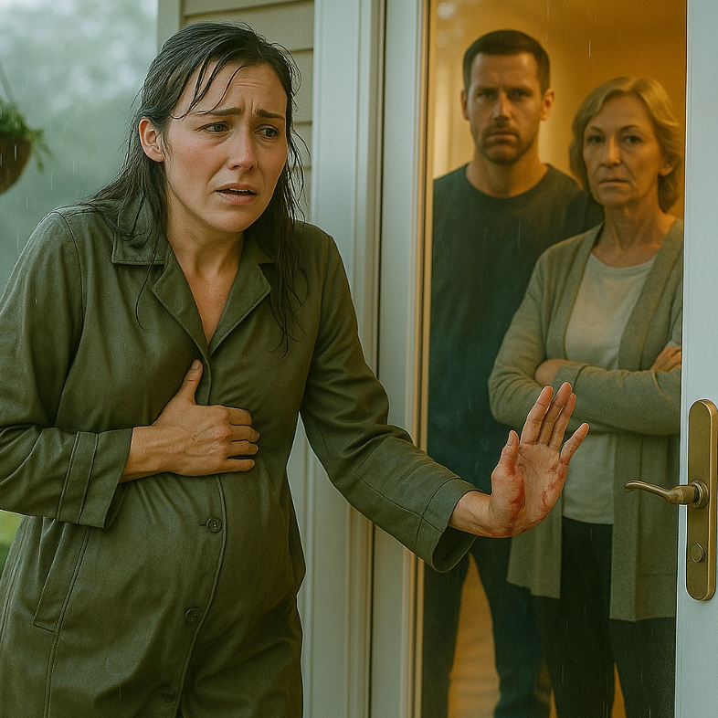 The rain hammered against my skin like a thousand tiny needles, each drop colder than the last. I stood on the porch of what was supposed to be my home, my sanctuary, pounding on the door until my knuckles split and bled. Through the frosted glass, I could see their shadows—my husband and his mother—standing perfectly still, watching me beg.