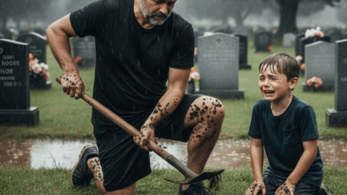 On a cloudy morning, workers gathered at the cemetery. The backhoe hummed, lifting earth away until the coffin appeared. Richard stood pale beside his brother Paul. Ethan, determined, refused to move from the front. His fists were clenched, his gaze fixed on the casket.