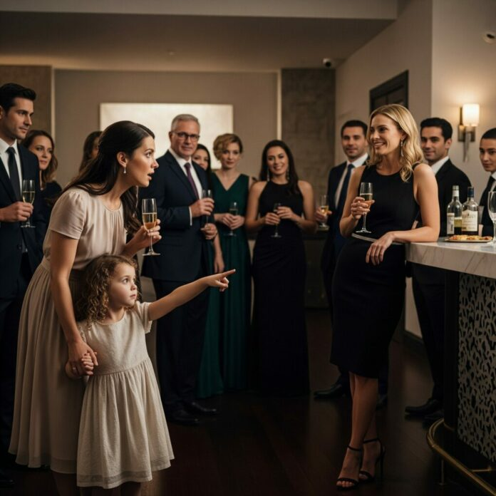 Theo, my husband of seven years, was across the room, basking in the glow of his promotion. The company had thrown this entire party to honor his partnership, and the room seemed to orbit around him. And yet, here was my daughter, pointing to another woman and speaking about secrets she should never know.