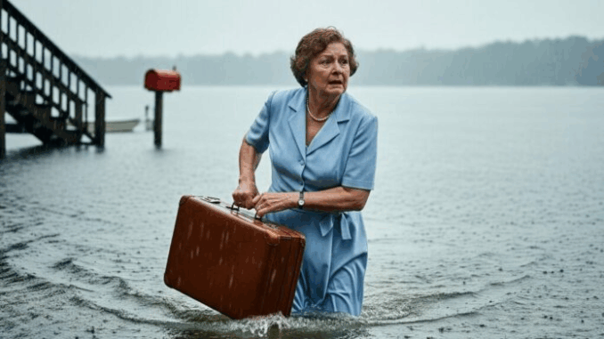 She swung the suitcase and hurled it into the lake with a force that didn’t belong to her small frame. It hit the surface with a brutal splash, bobbed once, and began to sink.