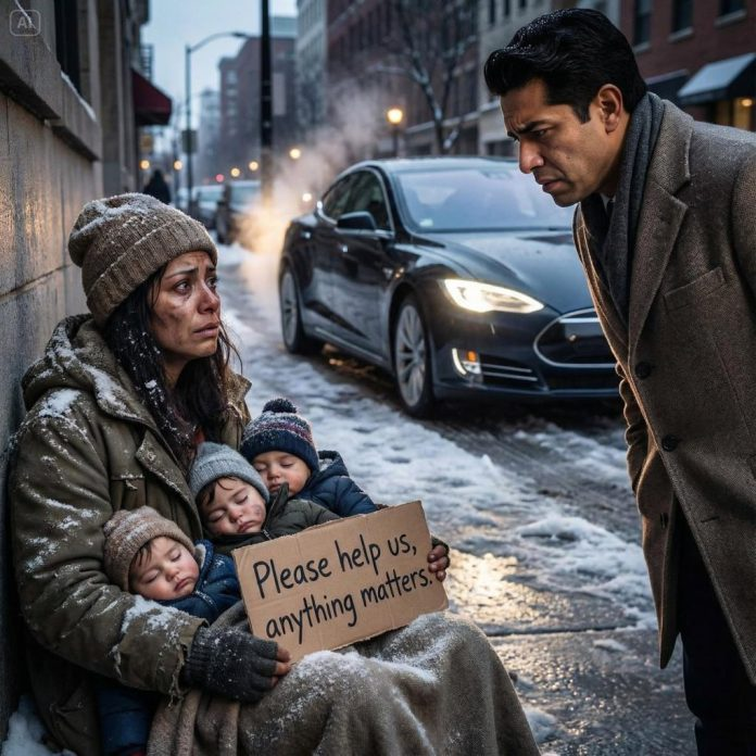 “A millionaire saw his ex-girlfriend begging in the street with three children who looked exactly like him. What happened next will break your heart.”