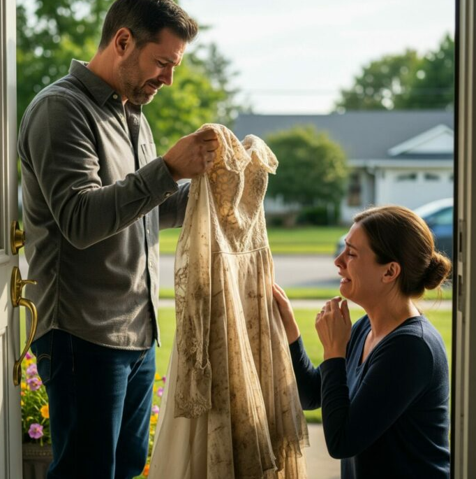 I stood frozen, tears blurring everything. My mother’s dress… gone? Tossed out?
