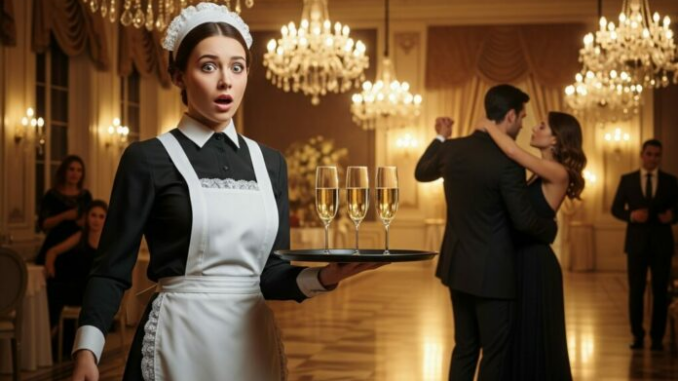 I walked closer, pretending to wobble. My hand “accidentally” tipped the tray. Champagne burst across his $3,000 suit. Gasps rippled. Mark turned sharply, annoyance on his face… until recognition hit.