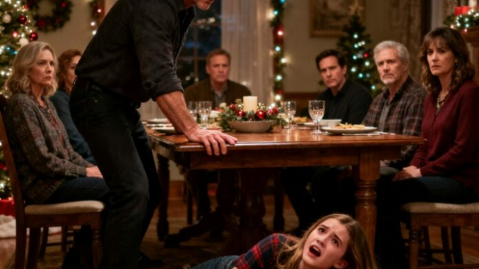 My stepdad slammed his hand on the Christmas table. “Get up. That seat belongs to my real daughter. OUT.” His voice cut through the room like a knife. I felt every eye on me as I hit the floor, my cheeks burning, his smirk burning deeper. But as I stood, something inside me shifted. He thought he’d humiliated me… yet he had no idea that later that night, I would change his life forever.