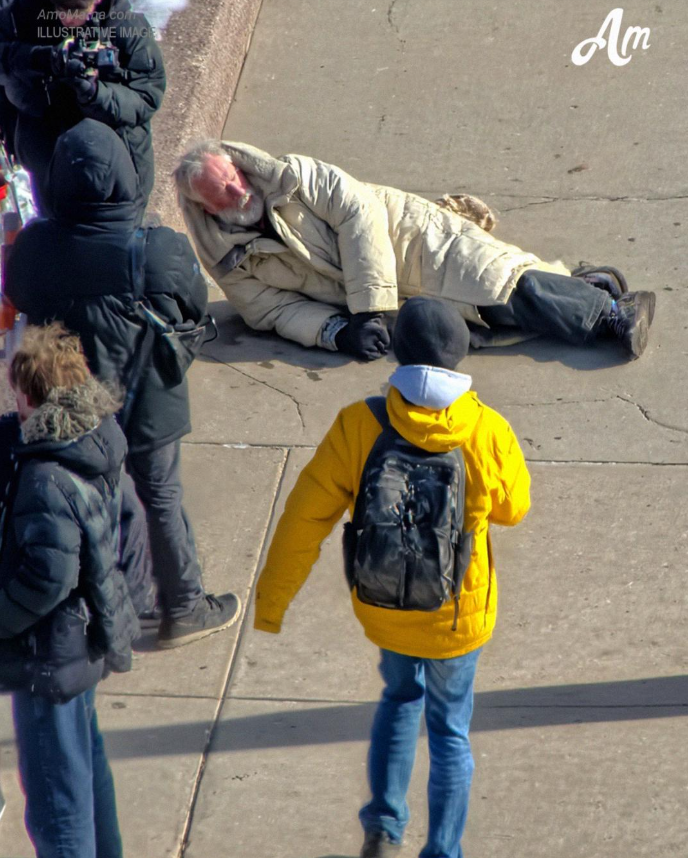 One woman in heels stepped over him without blinking. Another guy in a Bluetooth headset veered slightly to avoid him, but didn’t stop. No one did. To them, everything seemed normal; it was like he wasn’t even there. I couldn’t believe it.