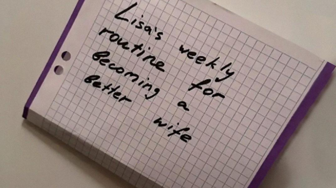 I stared at the paper in front of me. It was a schedule… and he’d written “Lisa’s Weekly Routine for Becoming a Better Wife” at the top in bold.