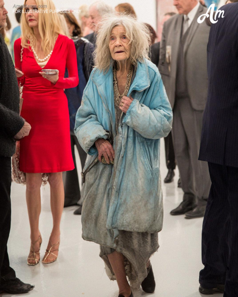 Around us, the atmosphere buzzed with discomfort. The same women who had scowled at her now stood with their backs turned, pretending to admire nearby pieces while still whispering, their words soaked in judgment.