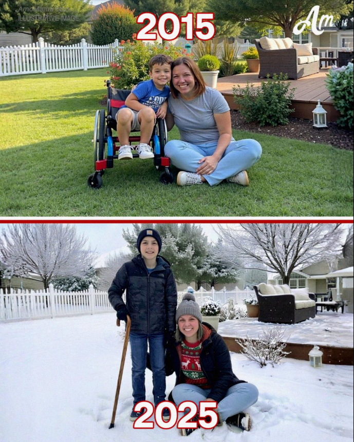 I turned just as he stepped out onto the porch. He was 15 now, taller, still slim, with the same bright eyes and determined stance. He leaned on his crutches, his expression wary as he looked at the woman who had once left him behind.