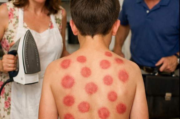 Red circles. Darkening patches. Older marks fading into scars. New burns still angry and wet. Not random. Not reachable by a child’s own hands. The iron’s metal plate was clean—no fabric residue. As if it had been used only for this.